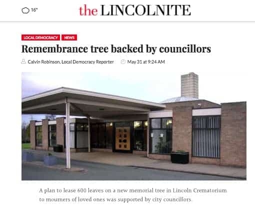 A plan to lease 600 leaves on a new memorial tree in Lincoln Crematorium to mourners of loved ones was supported by city councillors.