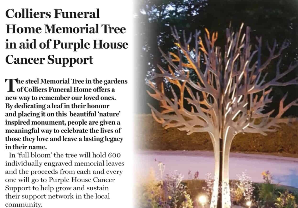 The steel Memorial Tree in the gardens of Colliers Funeral Home offers a new way to remember our loved ones.
