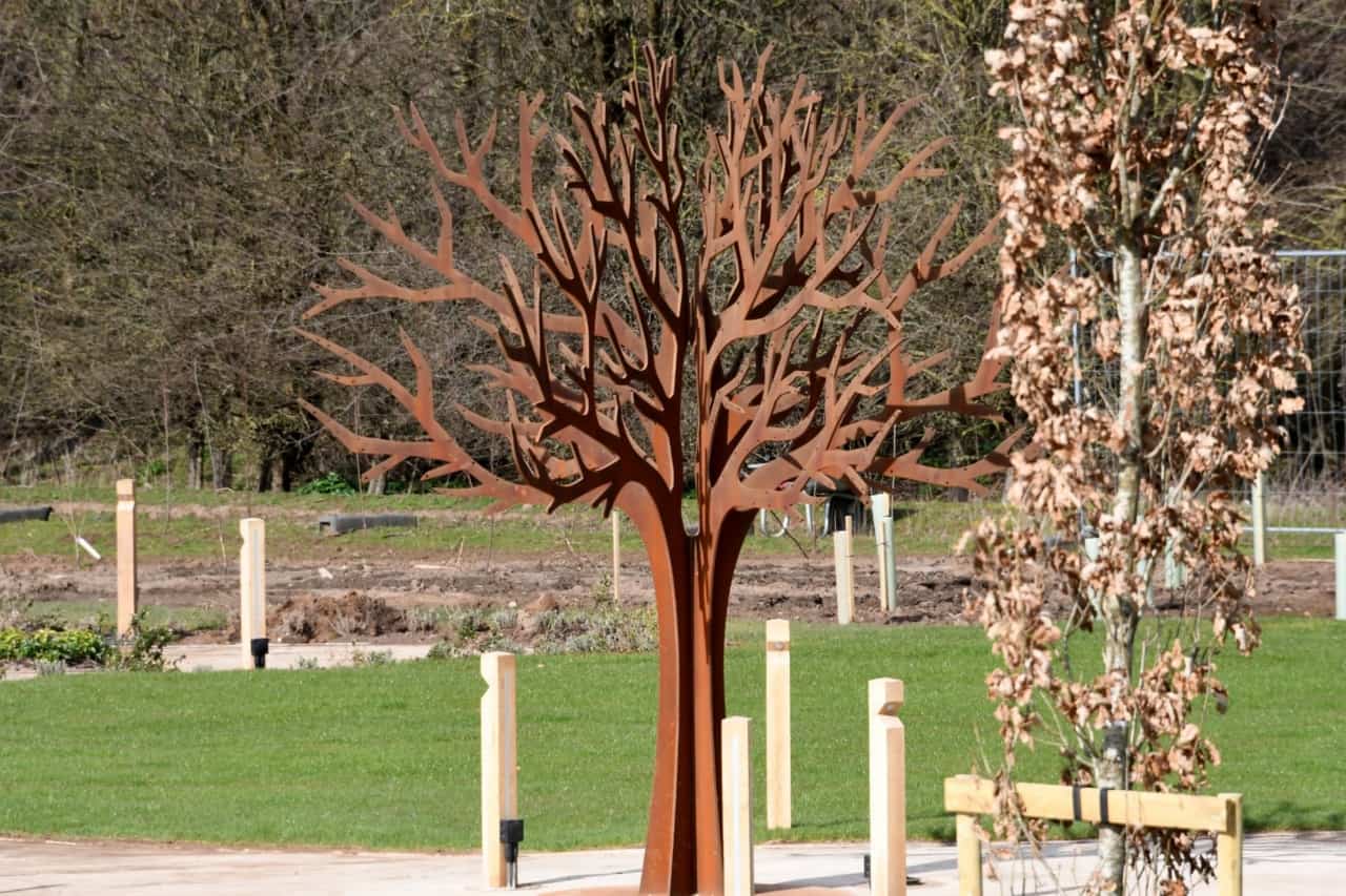 Now completed and recently opened the 320cm Memorial tree takes pride of place in the gardens. Such a transformation tree since we installed the memorial tree in muddy field in July 2022.