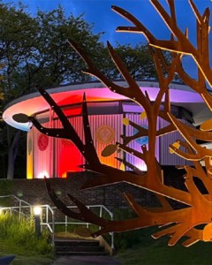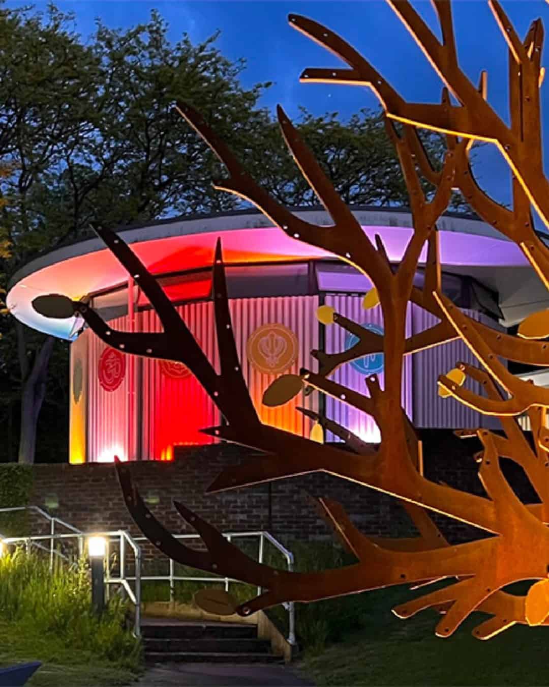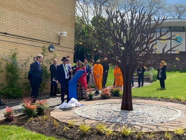 The space in front of the Roundhouse Religious Life and Belief Centre at the University has been a place of reflection, meditation and quiet gatherings. It was decided to landscape the area with new trees and to commission a memorial sculpture: the Tree of Life.